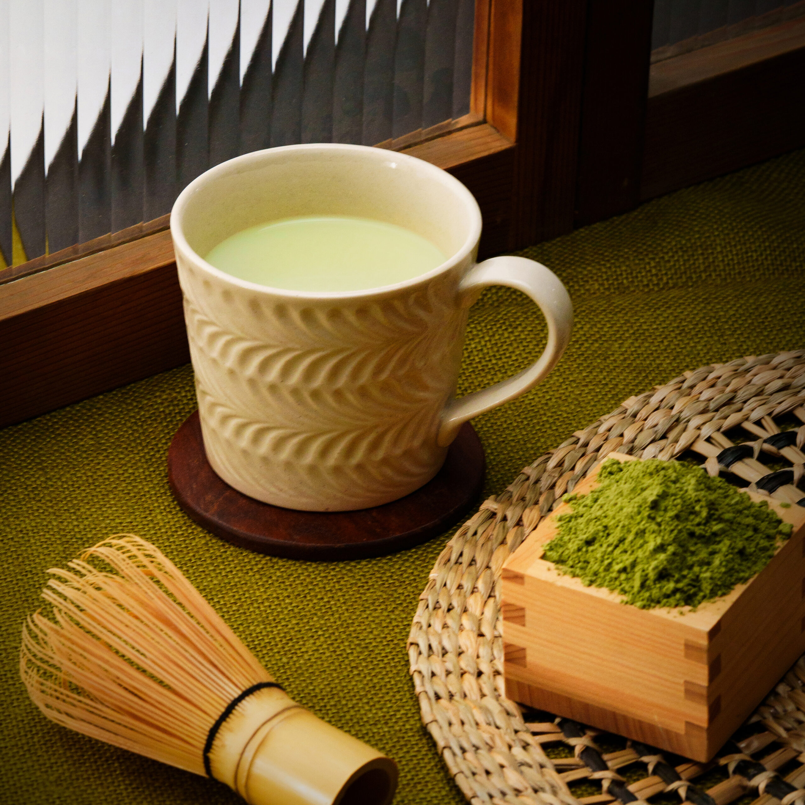 福岡県八女市でお茶づくりに取り組まれている、お茶の千代乃園様の有機JAS認定の抹茶パウダーと牛乳をブレンドし