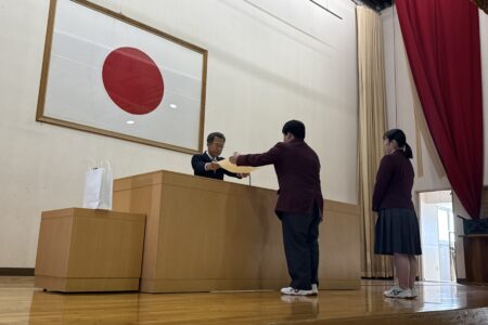 当日は授賞式が行われ、生徒の方からは、農業実習を通じて作物を育てることの大切さや、草刈り作業が農地や環境を守るうえで重要な役割を果たしていること、そして感謝の気持ちを持って機械を大切に使っていきたいという思いが語られました。代表取締役社長 今村健二は「川柳を通して農業への思いを言葉にする経験を、これからの成長につなげてほしい。皆さんが将来、農業や社会の担い手として活躍されることを期待しています」と激励しました。